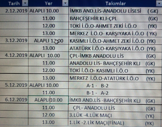 Alaplı okul müsabakaları takvimi