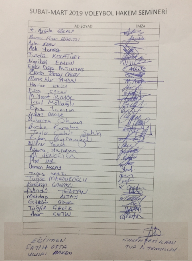 MART 2019 Servis ve Libero konulu Hakem Eğitim katılım listesi